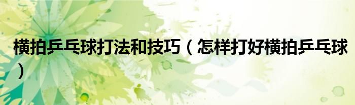 关于横拍乒乓球打法和技巧,怎样打好横拍乒乓球这个很多人还不知道,今天菲菲来为大家解答以上的问题,现在让我们一起来看看吧!