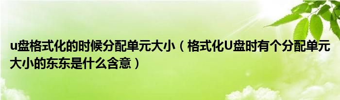 关于u盘格式化的时候分配单元大小,格式化U盘时有个分配单元大小的东东是什么含意这个很多人还不知道,今天菲菲来为大家解答以上的问题,现在让我们一起来看看吧!