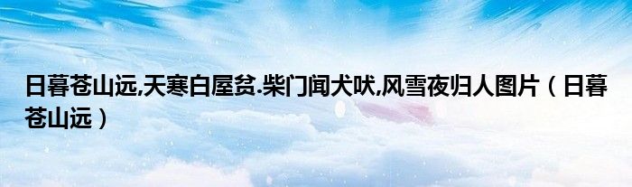 关于日暮苍山远,天寒白屋贫.柴门闻犬吠,风雪夜归人图片,日暮苍山远这个很多人还不知道,今天菲菲来为大家解答以上的问题,现在让我们一起来看看吧!