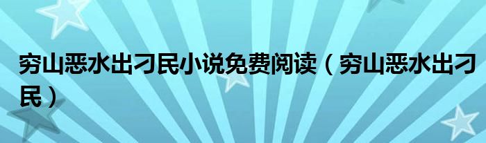 关于穷山恶水出刁民小说免费阅读,穷山恶水出刁民这个很多人还不知道,今天菲菲来为大家解答以上的问题,现在让我们一起来看看吧!