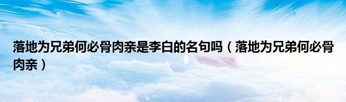落地为兄弟何必骨肉亲是李白的名句吗(落地为兄弟何必骨肉亲)
