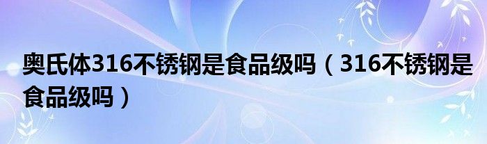 大家好,小晋来为大家解答以下问题,关于奥氏体316不锈钢是食品级吗,316不锈钢是食品级吗很多人还不知道,今天让我们一起来看看吧!