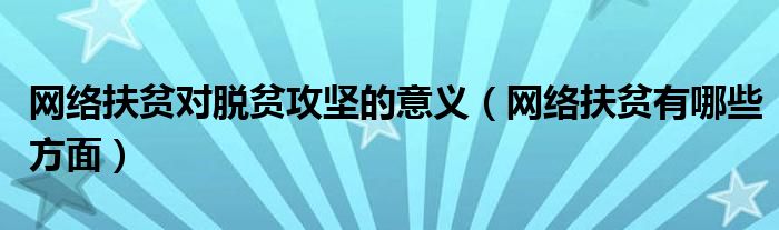 网络扶贫对脱贫攻坚的意义(网络扶贫有哪些方面)