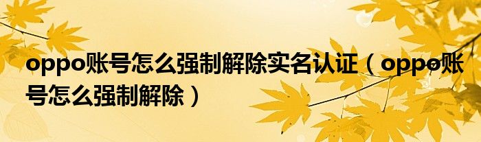 大家好,小晋来为大家解答以下问题,关于oppo账号怎么强制解除实名认证,oppo账号怎么强制解除很多人还不知道,今天让我们一起来看看吧!