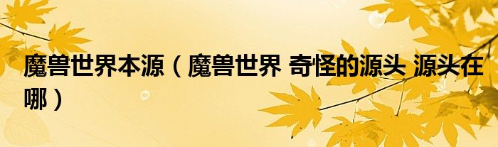 关于魔兽世界本源,魔兽世界 奇怪的源头 源头在哪这个很多人还不知道,今天菲菲来为大家解答以上的问题,现在让我们一起来看看吧!