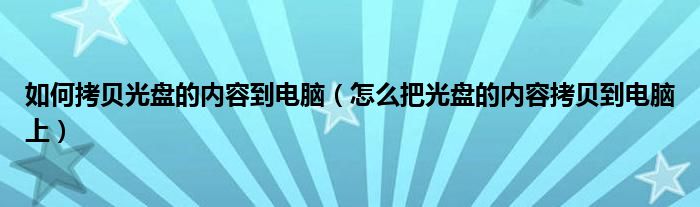如何拷贝光盘的内容到电脑(怎么把光盘的内容拷贝到电脑上)