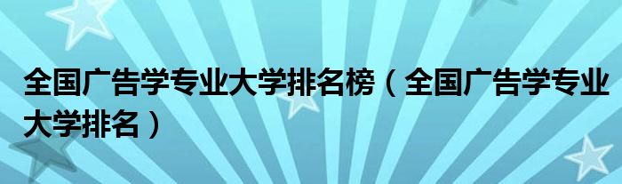 1、TOP10(全国广告学专业权威排名): 厦门大学 2、中国传媒大学 3、中国人民大学。