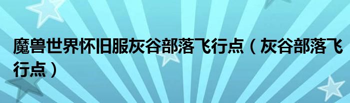 关于魔兽世界怀旧服灰谷部落飞行点,灰谷部落飞行点这个很多人还不知道,今天菲菲来为大家解答以上的问题,现在让我们一起来看看吧!