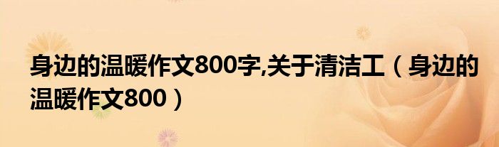 关于身边的温暖作文800字,关于清洁工,身边的温暖作文800这个很多人还不知道,今天菲菲来为大家解答以上的问题,现在让我们一起来看看吧!