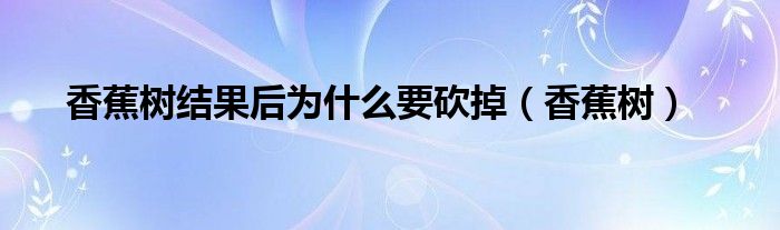 关于香蕉树结果后为什么要砍掉,香蕉树这个很多人还不知道,今天菲菲来为大家解答以上的问题,现在让我们一起来看看吧!