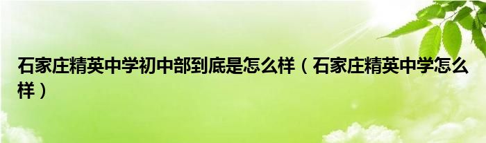 关于石家庄精英中学初中部到底是怎么样,石家庄精英中学怎么样这个很多人还不知道,今天菲菲来为大家解答以上的问题,现在让我们一起来看看吧!
