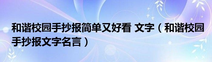 关于和谐校园手抄报简单又好看 文字,和谐校园手抄报文字名言这个很多人还不知道,今天菲菲来为大家解答以上的问题,现在让我们一起来看看吧!