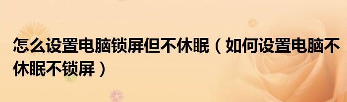 关于怎么设置电脑锁屏但不休眠,如何设置电脑不休眠不锁屏这个很多人还不知道,今天菲菲来为大家解答以上的问题,现在让我们一起来看看吧!