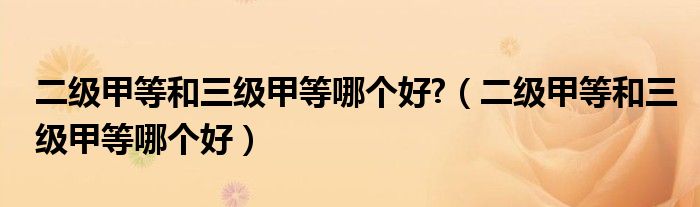关于二级甲等和三级甲等哪个好?,二级甲等和三级甲等哪个好这个很多人还不知道,今天菲菲来为大家解答以上的问题,现在让我们一起来看看吧!
