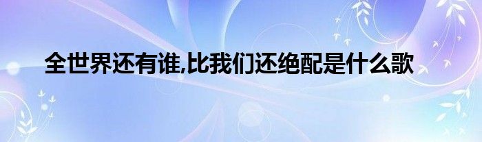 关于全世界还有谁,比我们还绝配是什么歌这个很多人还不知道,今天菲菲来为大家解答以上的问题,现在让我们一起来看看吧!