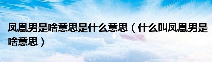 关于凤凰男是啥意思是什么意思,什么叫凤凰男是啥意思这个很多人还不知道,今天菲菲来为大家解答以上的问题,现在让我们一起来看看吧!