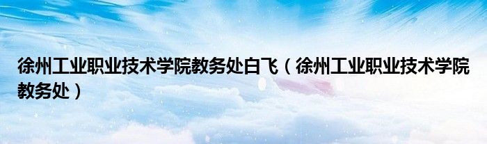 关于徐州工业职业技术学院教务处白飞,徐州工业职业技术学院教务处这个很多人还不知道,今天菲菲来为大家解答以上的问题,现在让我们一起来看看吧!