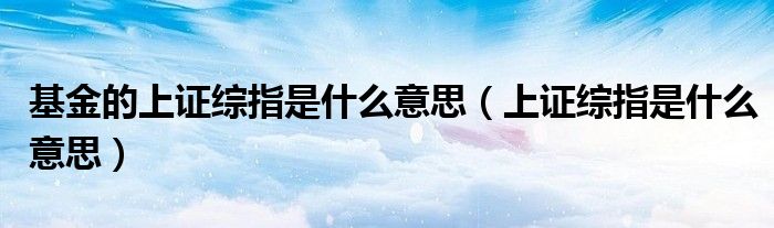 关于基金的上证综指是什么意思,上证综指是什么意思这个很多人还不知道,今天菲菲来为大家解答以上的问题,现在让我们一起来看看吧!