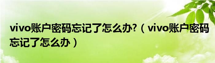 vivo账户密码忘记了怎么办?(vivo账户密码忘记了怎么办)