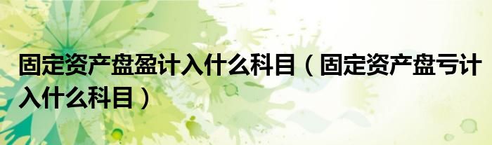 固定资产盘盈计入什么科目(固定资产盘亏计入什么科目)
