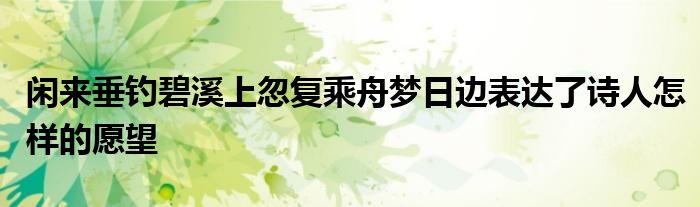 关于闲来垂钓碧溪上忽复乘舟梦日边表达了诗人怎样的愿望这个很多人还不知道,今天菲菲来为大家解答以上的问题,现在让我们一起来看看吧!