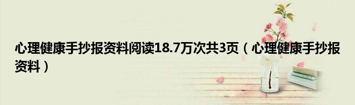 关于心理健康手抄报资料阅读18.7万次共3页,心理健康手抄报资料这个很多人还不知道,今天菲菲来为大家解答以上的问题,现在让我们一起来看看吧!
