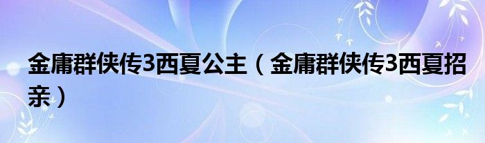 关于金庸群侠传3西夏公主,金庸群侠传3西夏招亲这个很多人还不知道,今天菲菲来为大家解答以上的问题,现在让我们一起来看看吧!