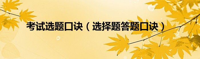 关于考试选题口诀,选择题答题口诀这个很多人还不知道,今天菲菲来为大家解答以上的问题,现在让我们一起来看看吧!