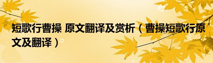 关于短歌行曹操 原文翻译及赏析,曹操短歌行原文及翻译这个很多人还不知道,今天菲菲来为大家解答以上的问题,现在让我们一起来看看吧!