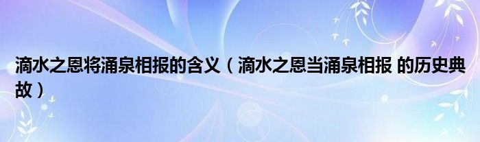 关于滴水之恩将涌泉相报的含义,滴水之恩当涌泉相报 的历史典故这个很多人还不知道,今天菲菲来为大家解答以上的问题,现在让我们一起来看看吧!
