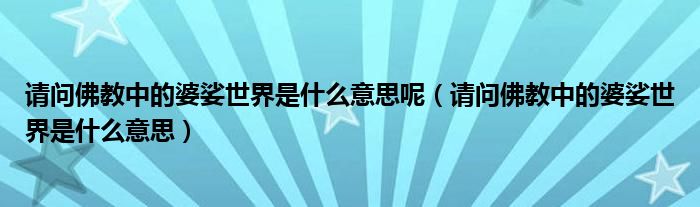 关于请问佛教中的婆娑世界是什么意思呢,请问佛教中的婆娑世界是什么意思这个很多人还不知道,今天菲菲来为大家解答以上的问题,现在让我们一起来看看吧!