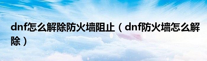 dnf怎么解除防火墙阻止(dnf防火墙怎么解除)