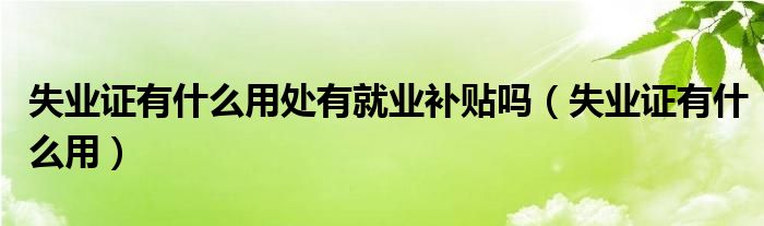 关于失业证有什么用处有就业补贴吗,失业证有什么用这个很多人还不知道,今天菲菲来为大家解答以上的问题,现在让我们一起来看看吧!