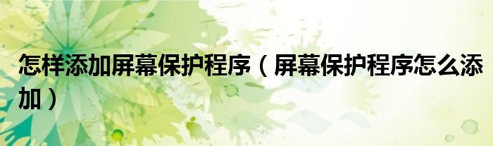 关于怎样添加屏幕保护程序,屏幕保护程序怎么添加这个很多人还不知道,今天菲菲来为大家解答以上的问题,现在让我们一起来看看吧!
