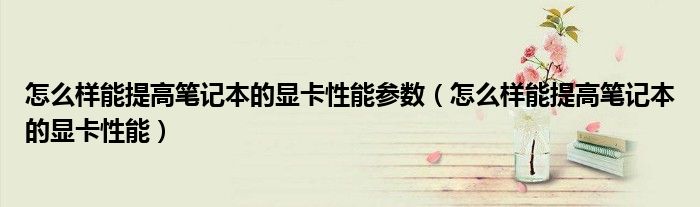 关于怎么样能提高笔记本的显卡性能参数,怎么样能提高笔记本的显卡性能这个很多人还不知道,今天菲菲来为大家解答以上的问题,现在让我们一起来看看吧!