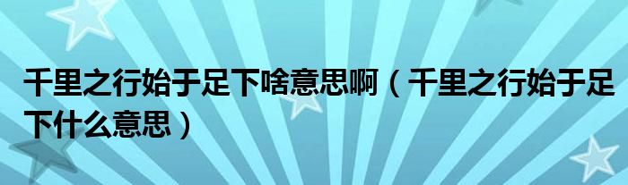 关于千里之行始于足下啥意思啊,千里之行始于足下什么意思这个很多人还不知道,今天菲菲来为大家解答以上的问题,现在让我们一起来看看吧!