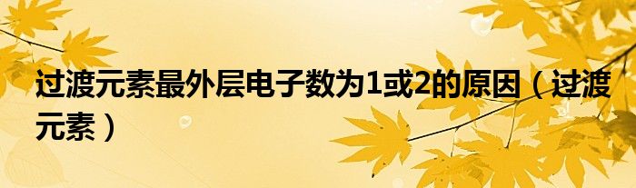 关于过渡元素最外层电子数为1或2的原因,过渡元素这个很多人还不知道,今天菲菲来为大家解答以上的问题,现在让我们一起来看看吧!