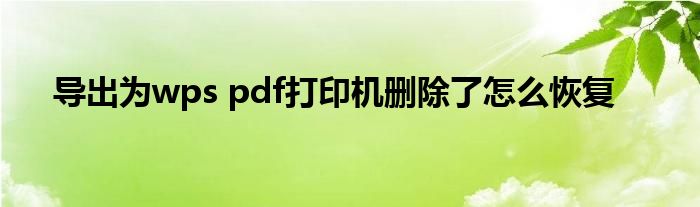 关于导出为wps pdf打印机删除了怎么恢复这个很多人还不知道,今天菲菲来为大家解答以上的问题,现在让我们一起来看看吧!
