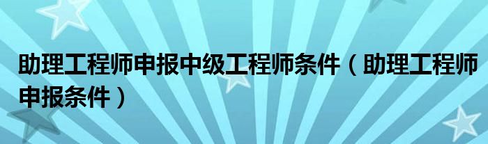 助理工程师申报中级工程师条件(助理工程师申报条件)