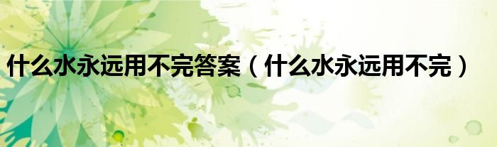 关于什么水永远用不完答案,什么水永远用不完这个很多人还不知道,今天菲菲来为大家解答以上的问题,现在让我们一起来看看吧!