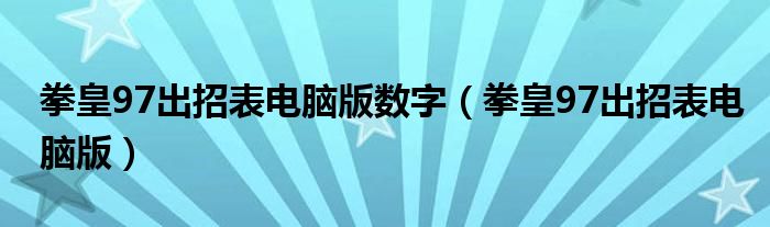 关于拳皇97出招表电脑版数字,拳皇97出招表电脑版这个很多人还不知道,今天菲菲来为大家解答以上的问题,现在让我们一起来看看吧!