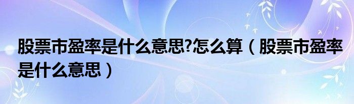 关于股票市盈率是什么意思?怎么算,股票市盈率是什么意思这个很多人还不知道,今天菲菲来为大家解答以上的问题,现在让我们一起来看看吧!