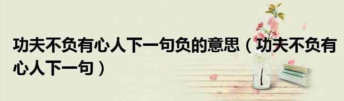 关于功夫不负有心人下一句负的意思,功夫不负有心人下一句这个很多人还不知道,今天菲菲来为大家解答以上的问题,现在让我们一起来看看吧!