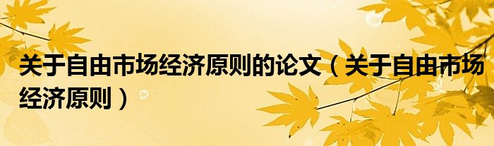 关于关于自由市场经济原则的论文,关于自由市场经济原则这个很多人还不知道,今天菲菲来为大家解答以上的问题,现在让我们一起来看看吧!