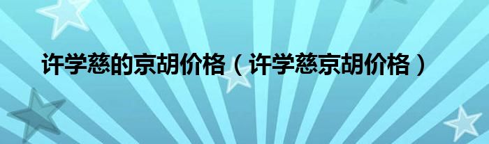 许学慈的京胡价格(许学慈京胡价格)