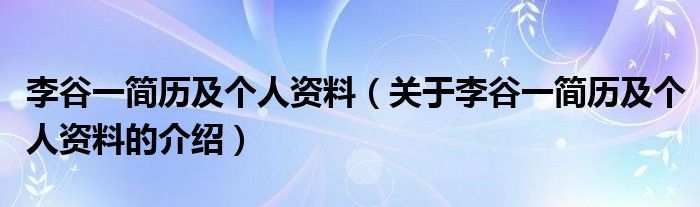 李谷一简历及个人资料(关于李谷一简历及个人资料的介绍)