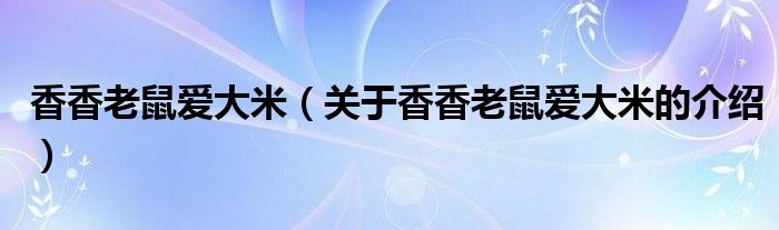 香香老鼠爱大米(关于香香老鼠爱大米的介绍)