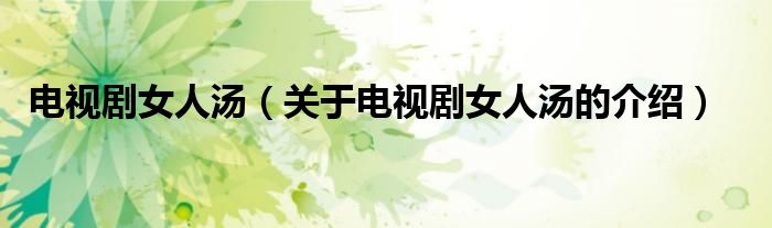 大家好,今天小乐来为大家解答以上的问题。电视剧女人汤,关于电视剧女人汤的介绍很多人还不知道,现在让我们一起来看看吧!