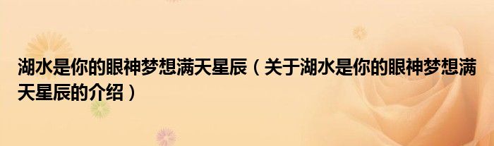 湖水是你的眼神梦想满天星辰(关于湖水是你的眼神梦想满天星辰的介绍)