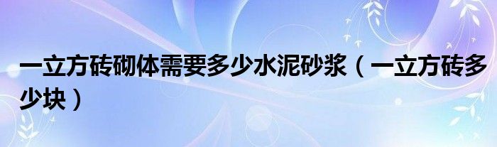 关于一立方砖砌体需要多少水泥砂浆,一立方砖多少块这个很多人还不知道,今天菲菲来为大家解答以上的问题,现在让我们一起来看看吧!